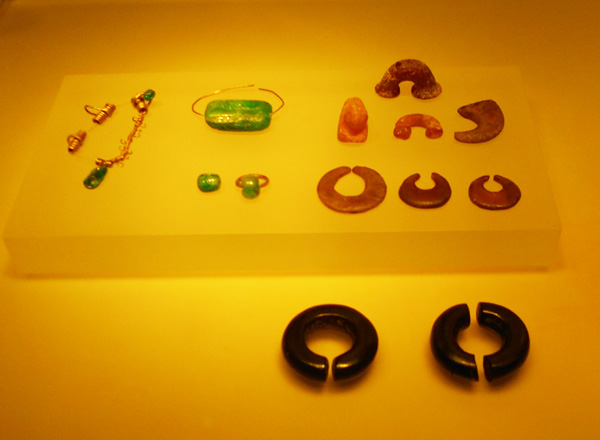 Exhibitions begin on the second floor. The main room is called "People and Gold in pre-Hispanic Colombia". In glass vitrines display goldsmiths' work from the different cultures which inhabited Colombia before the Spanish colonists arrived. The permanent exhibition is divided into different halls for every culture: Calima, Quimbaya, Muisca, Zenú, Tierradentro, San Agustín, Tolima, Tairona, and Urabá, and a special room called "After Columbus" (Después de Colón).