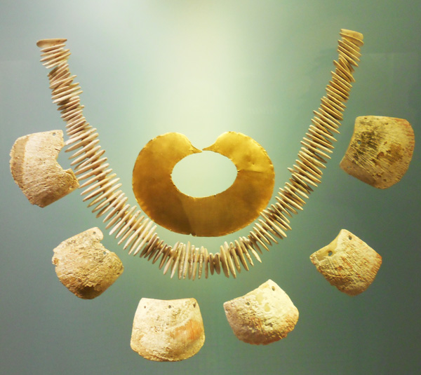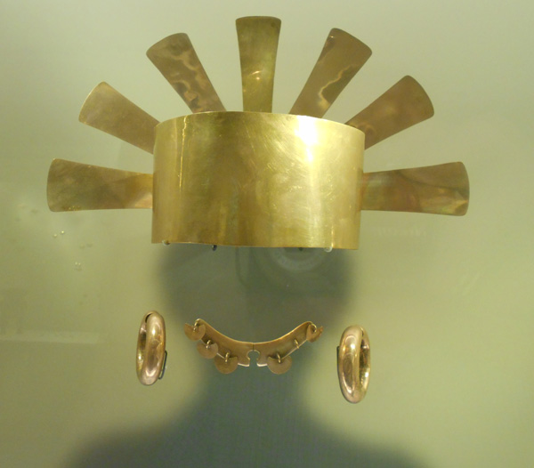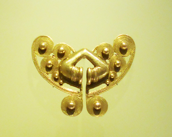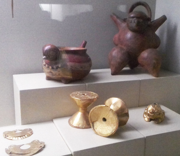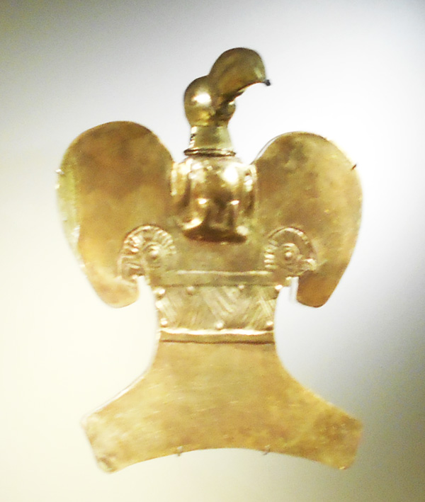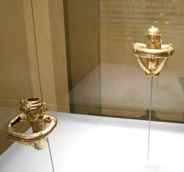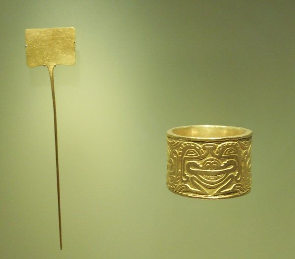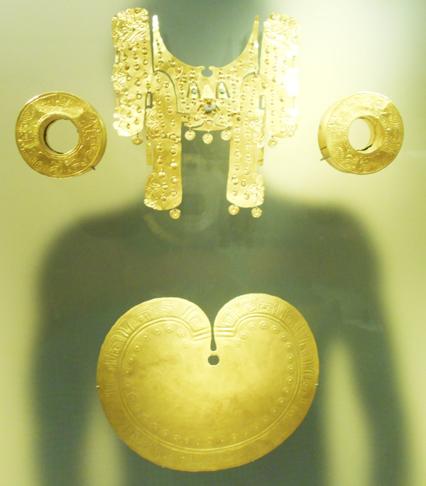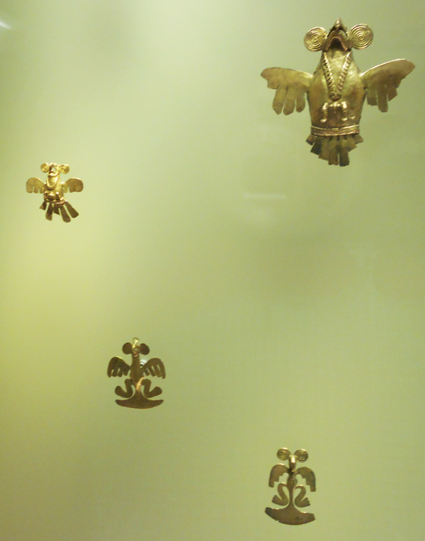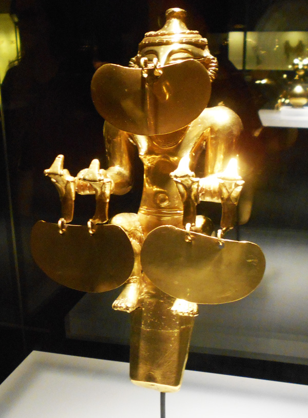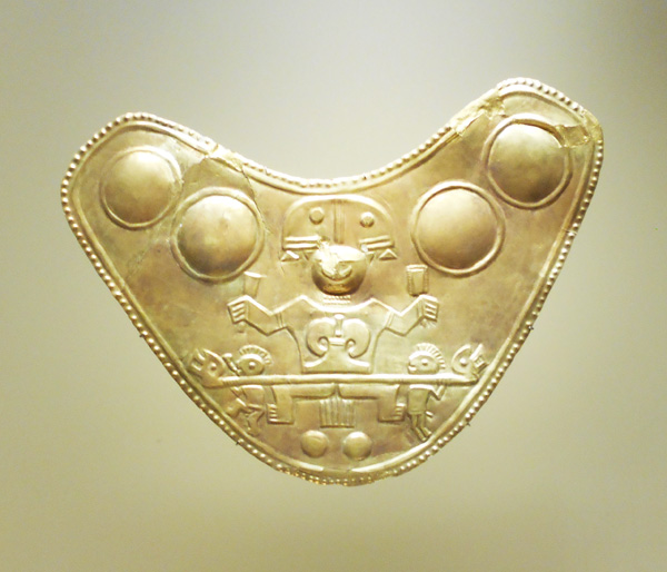 The museum displays a selection of pre-Columbian gold and other metal alloys, such as Tumbaga, and contains the largest collection of gold artifacts in the world in its exhibition rooms on the second and third floors. Together with pottery, stone, shell, wood and textile objects, these items, made of a– to indigenous cultures – sacred metal, testify to the life and thought of the different societies which lived in present-day Colombia before the Spanish conquest of the Americas.